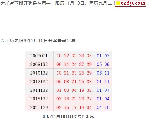 > 历史上的今天大乐透11月10日开奖号码汇总